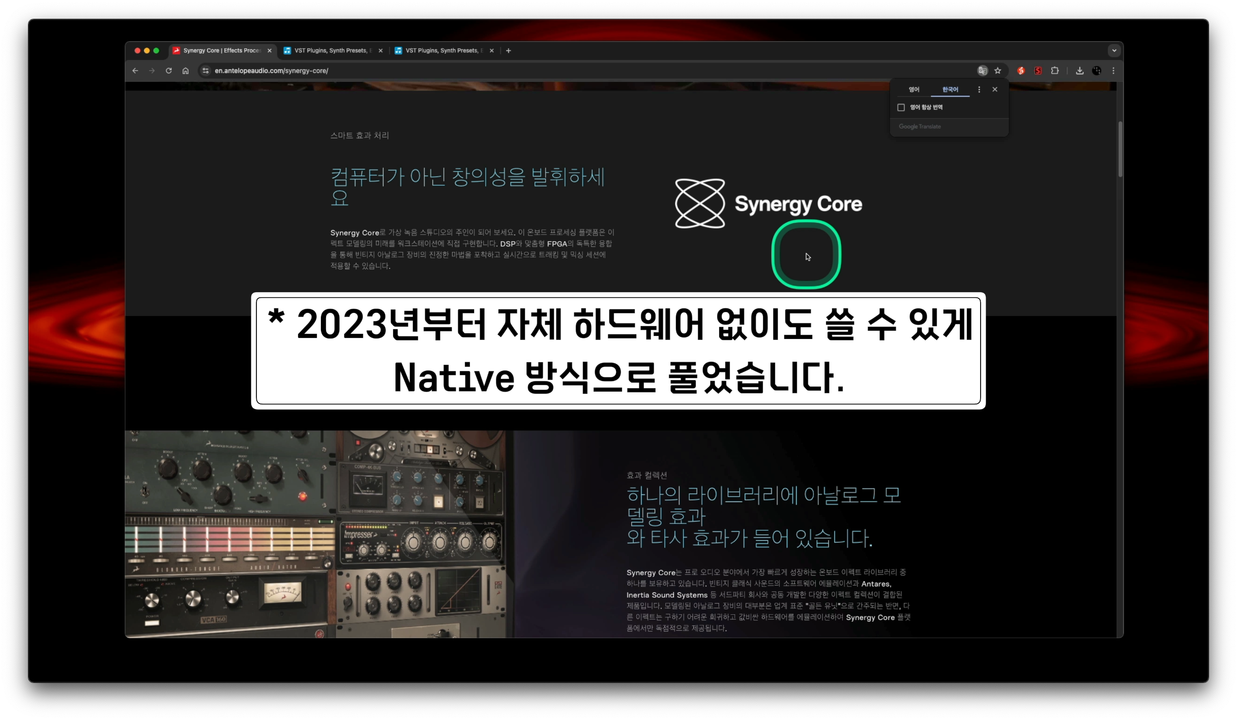 알고보니 'Synergy Core' 라는 이름의 정말 좋은 하드웨어 복각 기술을 가지고 있었고, 여러 내용을 찾아볼 수록 하드웨어를 복각한 제품들만큼은 UAD의 강력한 대항마이자 비슷한 등급의 여러 회사들 수준 이상이다라는 것을 알 수 있었습니다.